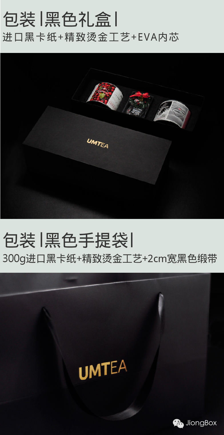 两大罐优质的天然花果茶,定制特色茶滤,全进口黑卡纸礼盒包装。